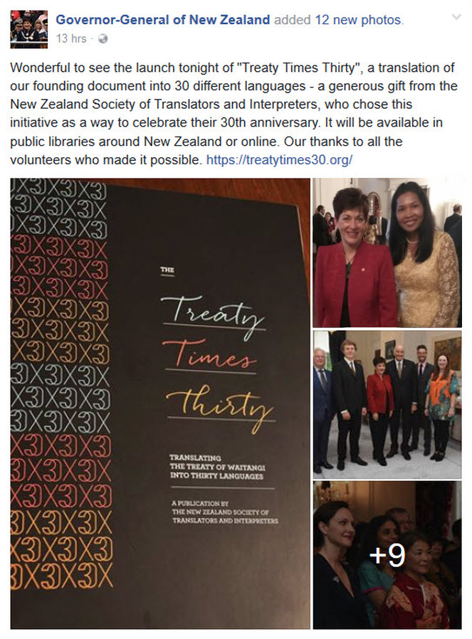 What a pleasure it was to meet the Governor-General, Dame Patsy Reddy (New Zealand Representative of THE QUEEN), at the unveiling of the official Book “Treaty Times 30”.
