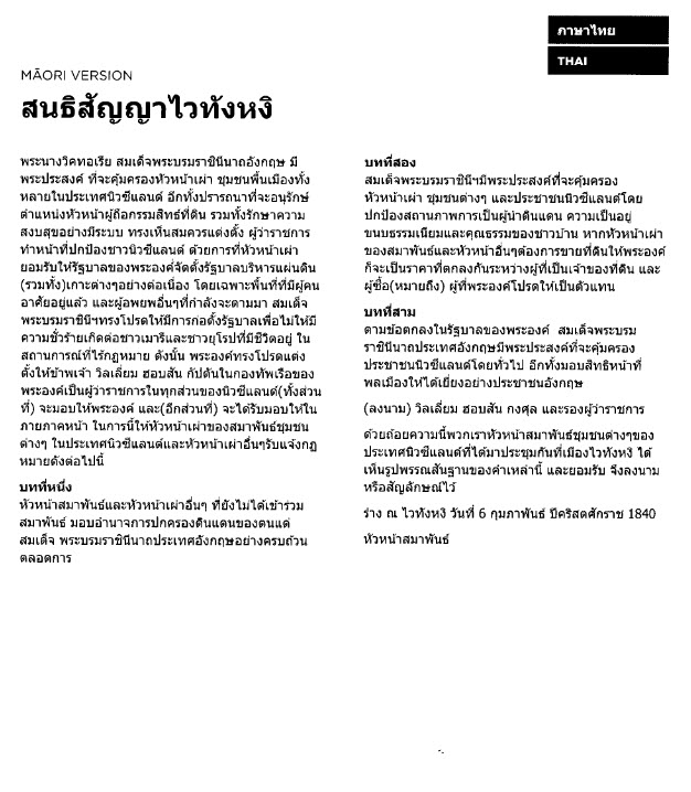 Treaty of Waitangi, Maori version, translated into Thai
