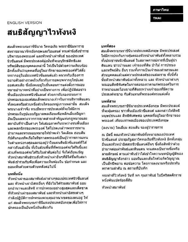 Treaty of Waitangi, English version, translated into Thai